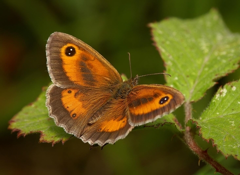 Description:Â Dark brown with creamy yellow spots. The best way to identify the 'brown' butterflies is by looking at the eyespots on their wings. The speckled wood is the only brown butterfly with three small, cream-ringed eyespots on each hindwing and one on each forewing.